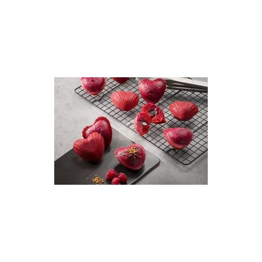 A szív formájú madeleine néhány perc alatt aranybarnára sül, így ideális gyors kiszolgáláshoz, elvitelre vagy szezonális ajánlatokhoz – különösen Anyák napjára, de egész évben is kiváló választás.