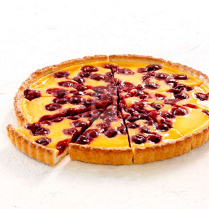 A kerek formájú, szépen bordázott szélű, 10 szeletesre vágott meggyes clafoutis süteményünk egy vaníliaízű clafoutis készítménnyel és kimagozott meggyel töltött omlós tésztából áll. Ízlelőbimbói számos ízt fedezhetnek fel benne. Elkészítését és kivitelezését leegyszerűsíti, hogy előre felszeletelik, ami ideális megoldás az időmegtakarításhoz.
