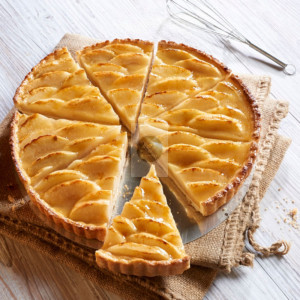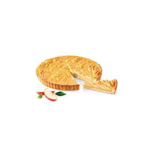 Gyümölcsben gazdag desszert. Vajas omlós tészta finom almapéppel és kézzel felhelyezett szép almaszeletekkel.