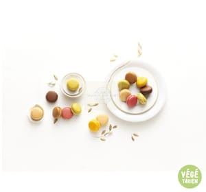 cukor, mandulaliszt, tojásfehérje, vaj (AOP Charentes-Poitou), csokoládé (Rainforest Alliance), természetes aromák, gyümölcs- és növényi kivonatok.
